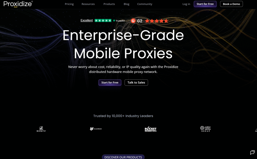 Proxidize supplies high-quality US-based 4G/5G mobile proxies with full rotation control and unlimited concurrency. The platform offers speeds up to 100 Mbps for self-hosted farms and web scraping operations.