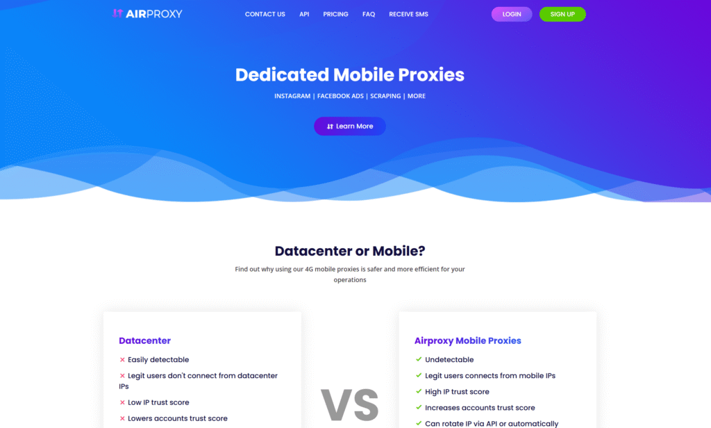 AirProxy specializes in premium mobile proxy solutions with high-performance 4G/5G connections optimized for demanding scraping tasks. The service maintains excellent uptime and success rates across tested platforms.