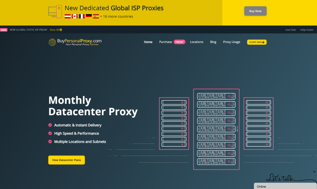 BuyPersonalProxy is a solid cheap datacenter pick for users who want low starting costs and a simple month-to-month plan. Its site advertises monthly or daily datacenter proxies starting at $1.29 per proxy per month, with automatic monthly billing and fast account delivery after payment confirmation. That makes it useful for smaller automation projects that need dedicated IPv4 proxies without a large upfront commitment.