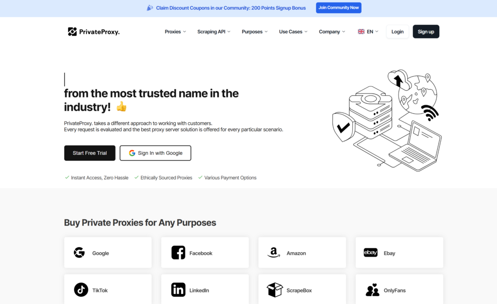 PrivateProxy.me is another low-cost datacenter option for users who want static private proxies with clear monthly pricing. Its site says datacenter static proxies start from $3 per month and are built for fast locations with round-the-clock technical support. The provider also positions its service around data scraping, research, and bot use cases, which fits the kind of workloads readers usually have in mind for cheap datacenter proxies.