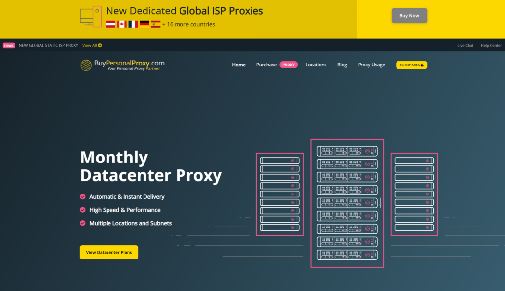 Key features: Dedicated IPv4 proxies, monthly and daily plans, quick activation, simple billing. Accurate datBuyPersonalProxy says pricing starts at $1.29 per proxy per month on the 1,000 proxy plan, with delivery in around five minutes after payment confirmation. Pros: Cheap dedicated pricing, straightforward setup, good fit for focused tasks on a budget. Cons: The headline price is tied to higher-volume purchases, so very small buyers may see a higher effective cost per IP.