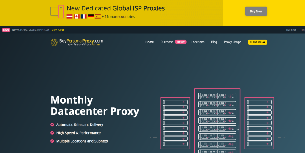 BuyPersonalProxy offers dedicated datacenter proxies alongside ISP, static residential, rotating residential, and mobile proxy products. Partner and review materials say its datacenter plans support HTTP, HTTPS, and SOCKS5, include private IPs, offer unlimited bandwidth, and support both IP whitelisting and username/password authentication. That flexibility makes it appealing for users who want one provider that can cover dedicated datacenter work now and broader proxy use cases later.