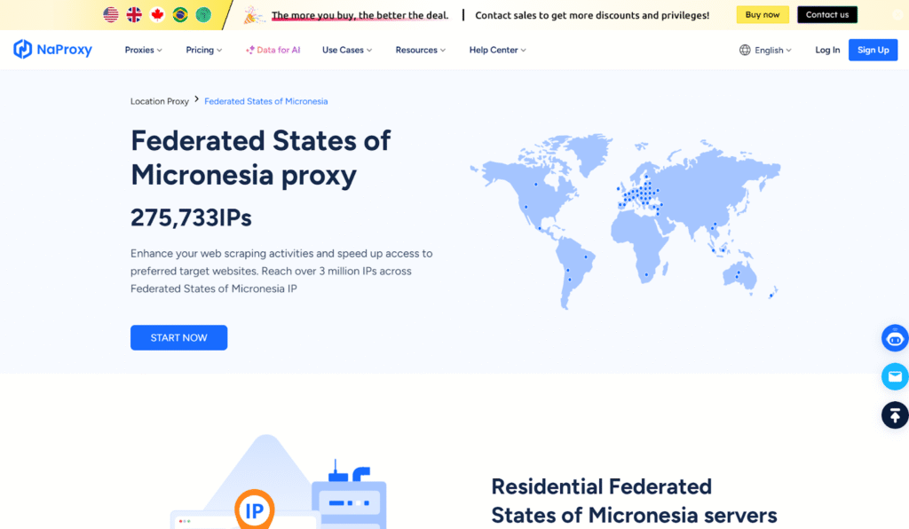 NaProxy provides access to over 3 million IPs across the Federated States of Micronesia with residential proxy options. Their service emphasizes fast connection speeds and reliable uptime for data collection tasks. The platform offers both static residential and datacenter proxy options suitable for various applications.