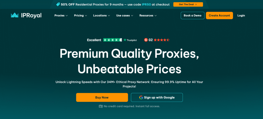 IPRoyal maintains a substantial network with over 119,000 Moldovan IP addresses across multiple cities. Their service offers six proxy types for Moldova: datacenter, residential (sticky or rotating), private, 4G mobile, and sneaker proxies, providing comprehensive options for different use cases.