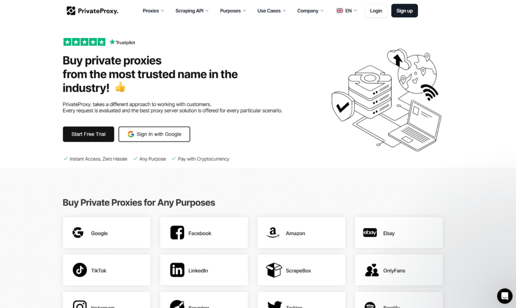 PrivateProxy.me specializes in dedicated static residential proxies with unmetered bandwidth, starting at just $5 per month per proxy. The service features automatic monthly IP rotation while maintaining continuous availability throughout billing cycles. Geo-targeting options span multiple continents with free IP swaps included.