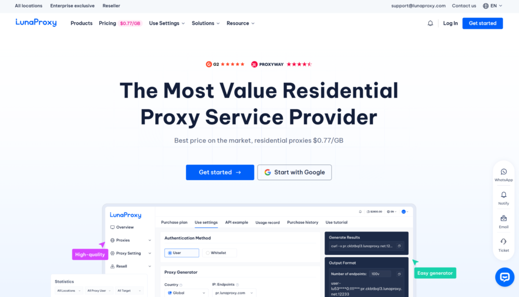 LunaProxy focuses on affordable residential and mobile proxies with good results on “mass task” AIO setups where you need many threads without breaking the bank. It offers millions of rotating IPs with support for country and city targeting, and it’s frequently recommended in 2026 lists for India, US, and EU sneaker use because of low latency and clean pools. LunaProxy’s pricing is aggressive per GB, which lets smaller cook groups and solo botters test more tasks per drop. The platform provides an API for automated list generation and integrates well with popular bots that require quick refresh of proxy lists between releases. The trade‑off is fewer advanced features than ultra‑premium providers and more manual tuning on tougher sites.