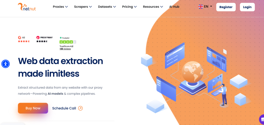 • Key Features: Vast proxy pool, granular geo-targeting, high success rate