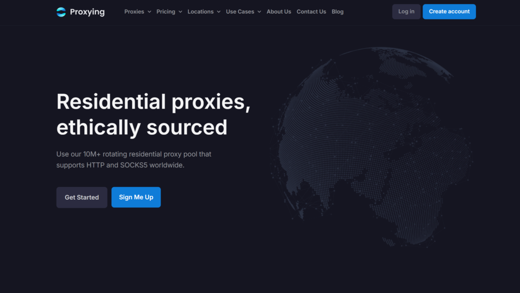 Proxying delivers 5 million residential IPs with HTTP/SOCKS5 support, per-request rotation, sticky sessions, and a free 2 GB trial for evaluation.