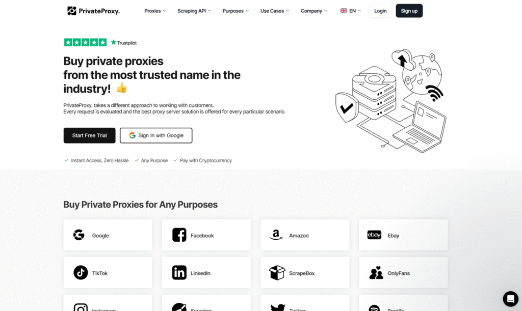 PrivateProxy delivers private dedicated proxy services with Saudi Arabian IP options for secure and anonymous browsing. The platform provides high-speed connections with reliable uptime and multiple authentication methods. PrivateProxy offers simple pricing with various plan tiers.