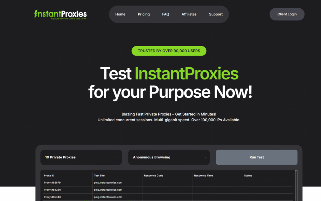 InstantProxies delivers datacenter proxy services with Saudi Arabian IP addresses for fast and reliable connections. The platform provides private dedicated proxies with instant setup and reliable uptime guarantees. InstantProxies offers straightforward pricing with various plan options.