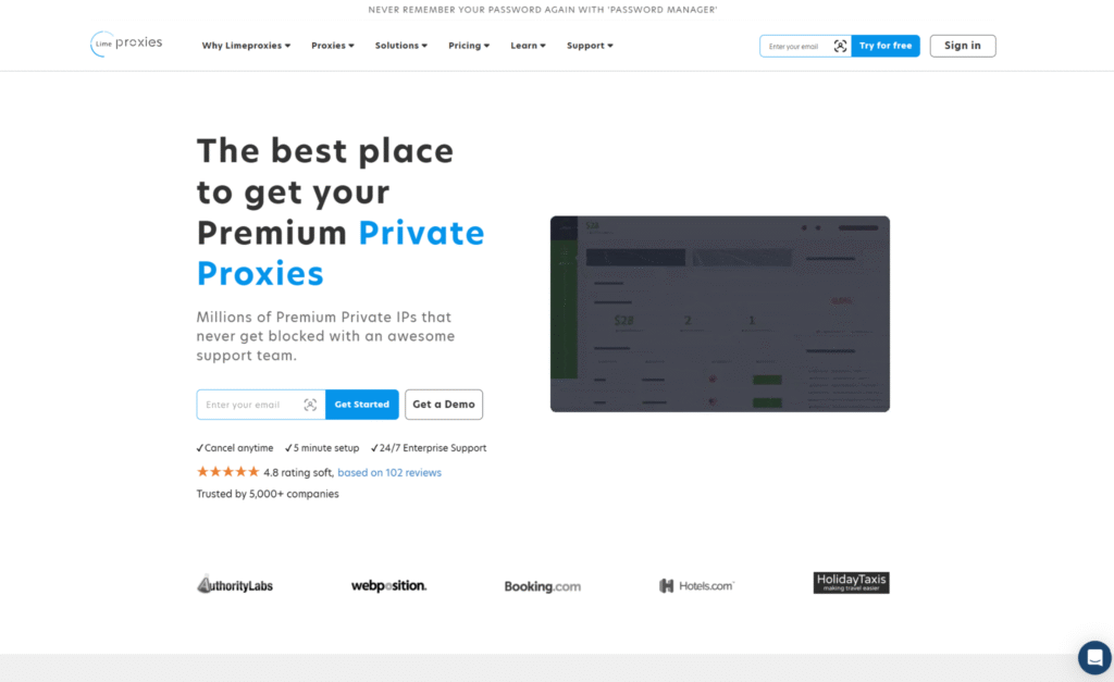 • Pros: Multiple proxy types, unlimited bandwidth, API-friendly