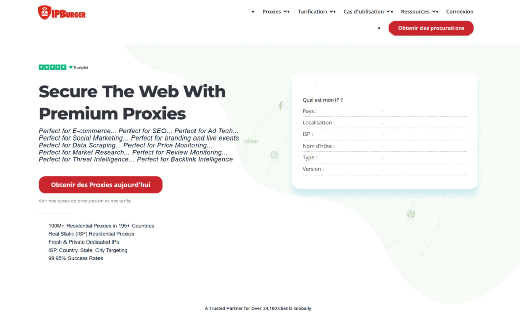 IPBurger provides ethically sourced residential proxies optimized for fast scraping and account management on Shopee. Their offerings include customizable rotation and unmetered bandwidth plans, appealing for both small and enterprise users.